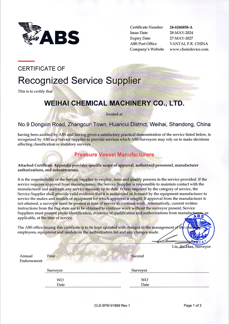 近日威海化工機(jī)械有限公司(以下簡(jiǎn)稱“威海化機(jī)”)壓力容器產(chǎn)品成功獲得了美國(guó)船級(jí)社(ABS)頒發(fā)的權(quán)威認(rèn)證,是繼復(fù)合板產(chǎn)品ABS認(rèn)證后拿到第二張ABS證書,這標(biāo)志…